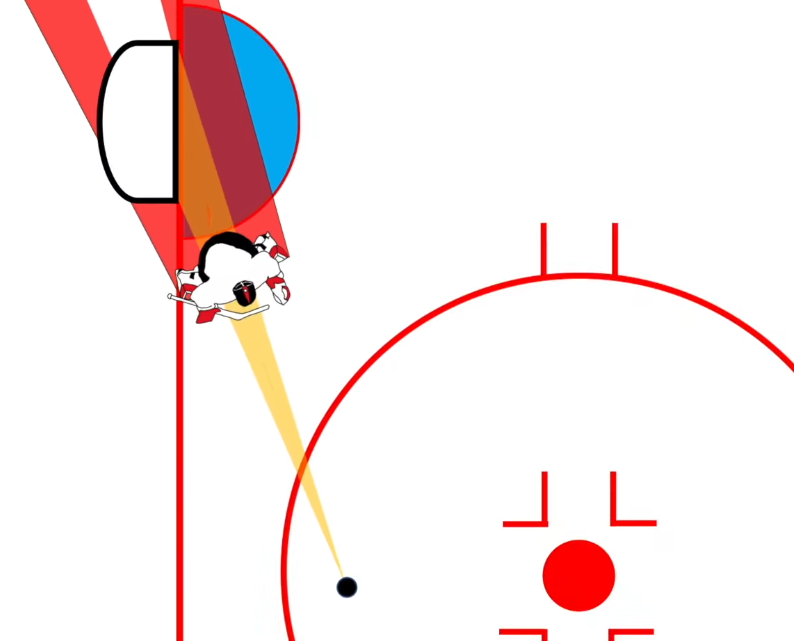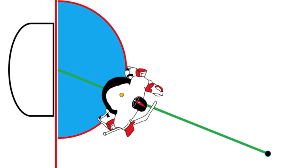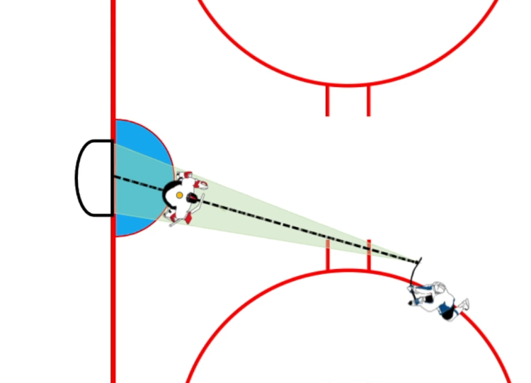 L’angle de jeu du gardien est beaucoup plus étroit que celui du joueur.